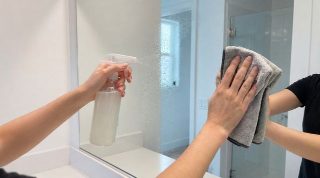 쌀뜨물로 욕실 거울을 닦는다. 기사 이해를 돕기 위해 AI로 제작한 자료 이미지.