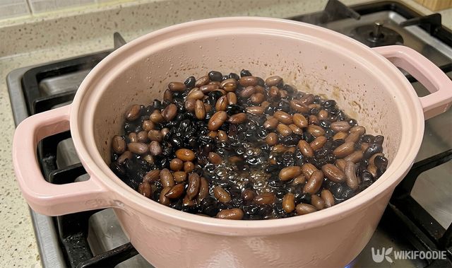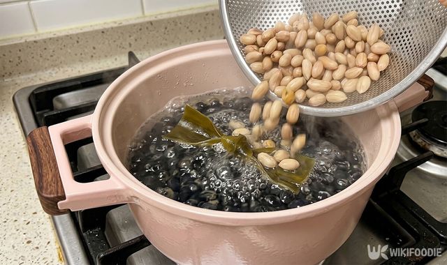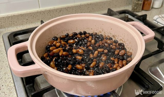 물이 끓기 시작하면 진간장 4큰술, 국간장 1큰술, 설탕의 일종인 원당 1큰술을 넣는다. 여기에 미리 삶아둔 땅콩과 잡내를 없애주는 미림 2큰술을 추가해 약불에서 20분간 끓인다. 서서히 익혀야 콩과 땅콩 속까지 간이 잘 배어든다.