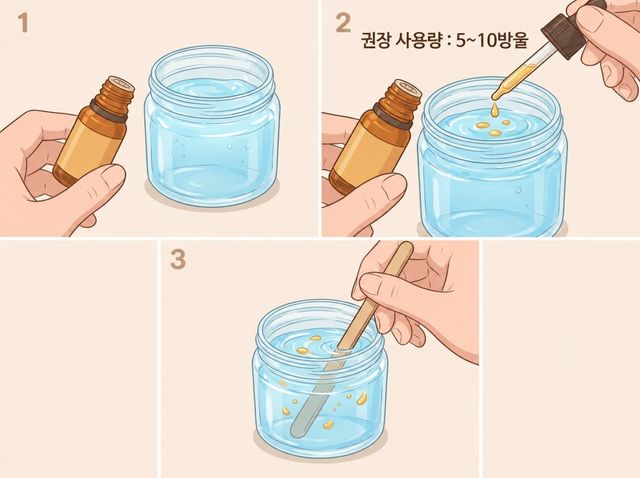 젤 방향제를 만들 때 이런 향의 에센셜 오일을 소량 섞어 배수구 근처나 환풍기 아래쪽에 두면 된다. 이때 젤을 배수구 안에 직접 넣는 것이 아니라, 작은 컵이나 빈 용기처럼 넘어지지 않는 그릇에 담아 두는 것이 안전하다. 욕실 바닥에 그대로 두면 물이 튀거나 미끄러질 수 있으므로 구석진 곳에 놓는 편이 좋다.