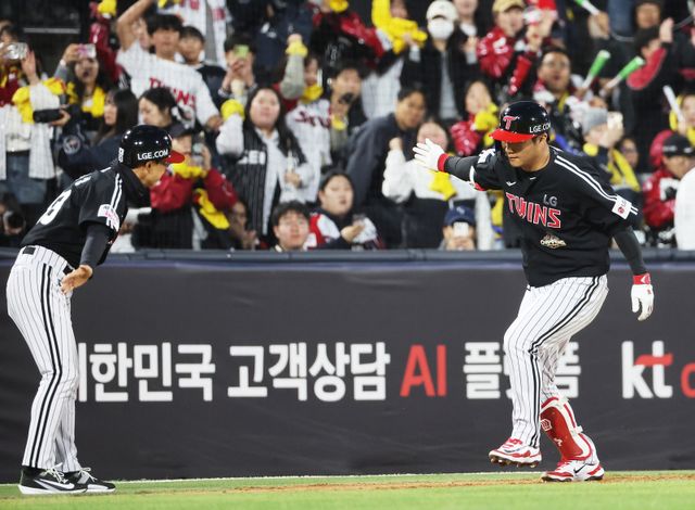 LG는 경기 초반 기선을 먼저 제압했다. 1회 초, 2번 타자 천성호와 후속 오스틴 딘이 KT 선발 투수 케일럽 보쉴리를 상대로 각각 안타와 볼넷을 얻어내며 만든 기회에서 4번 타자 문보경이 좌전 안타를 치며 첫 득점을 만들었다. 4회는 문보경이 선두 타자 볼넷으로 출루한 뒤 나선 송찬의가 보쉴리의 2구째 투심 패스트볼을 완벽한 타이밍에 받아 쳐 좌중간 담장을 넘겼다.