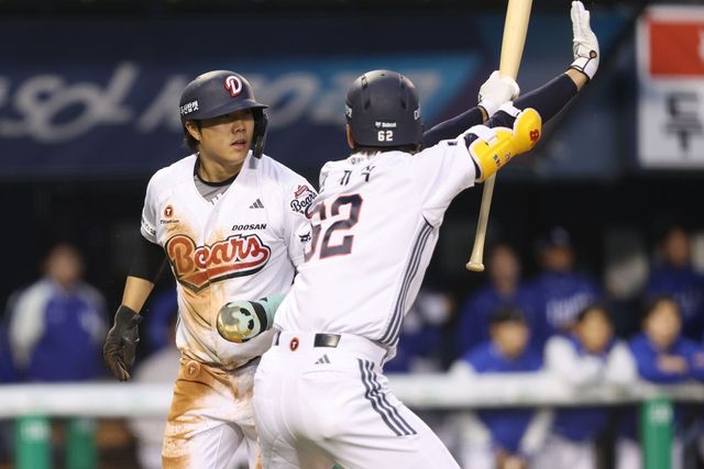 두산의 공격은 끊기지 않았다. 박준순의 3루수 앞 번트 안타로 만든 무사 1, 3루 기회에서 양의지의 우전 적시타로 한 점을 더 달아났다. 희생번트로 이어진 1사 2, 3루 기회에선 상대 폭투 득점과 안재석의 좌익선상 적시 2루타로 5-1까지 도망갔다.