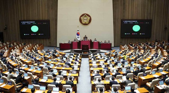 지난달 31일 서울 여의도 국회에서 열린 제433회국회(임시회) 제3차 본회의에 공휴일에 관한 법률 일부개정법률안(대안)이 통과되고 있다. / 뉴스1