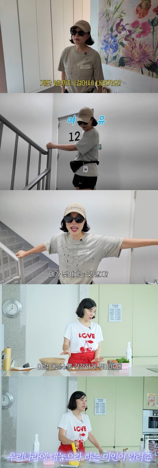 그러나 제작진들은 줄줄이 고통을 호소했고, 12층가지 거뜬히 올라간 최화정은 "숨 많이 쉬어. 폐가 찢어지는 것 같지? 그 느낌이 너무 좋지 않아?"라고 운동광의 면모를 드러냈다.