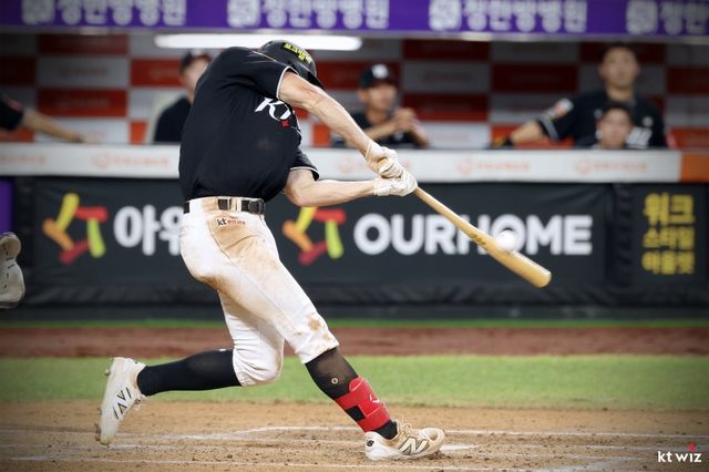 한화에게 먼저 4점을 내주고, 한화 선발 라이언 와이스에게 꽁꽁 묶였던 KT는 7회초가 되어서야 한 점을 만회했다.