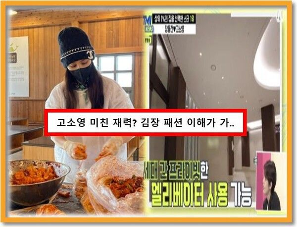 2022년 12월 17일, 고소영은 SNS에 "극한체험2. 밀린 숙제!! 김장하러 옴"이라는 글과 사진을 게재했습니다. 해당 사진 속 고소영은 위생복을 입고 명품 모자를 쓴 채 김장을 하고 있었습니다.
