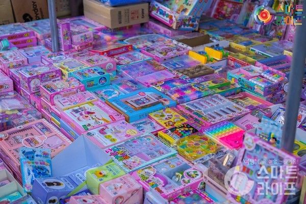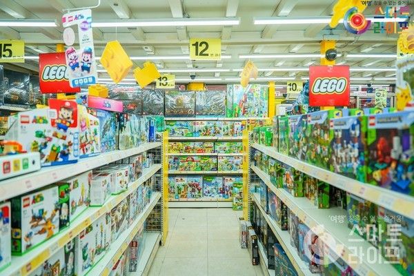 들어가는 입구부터 유치원 아가들에게 핫한 만화인 타요 버스가 바닥에서 맞이해주고 있었다. 실은 문구거리라고 되어있긴 하지만, 아트박스나 문방구 같이 문구류가 많은 거라고 생각하면 오산이다. 대부분 장난감이나 피규어, 인형의집 같이 오락 관련된 제품들이 많다.