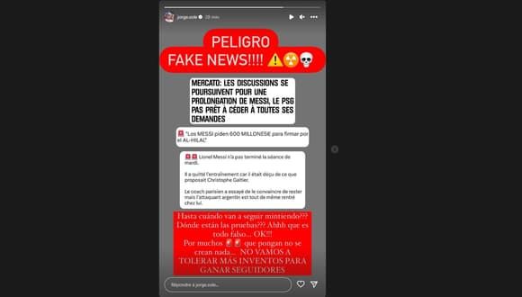 RMC 스포츠에 따르면 호르헤는 "가짜 뉴스다. 모든 것이 거짓이다. 증거는 어디에 있나"라며 보도 내용을 캡쳐해서 올렸다.