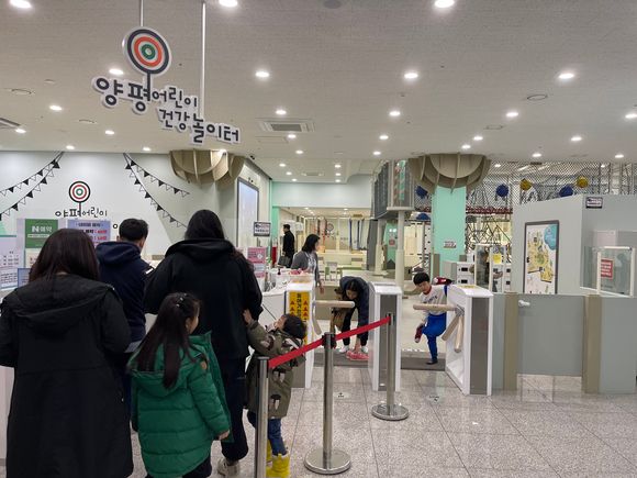 신체기구 놀이만 있는 것도 아니다. 모래놀이, 스케치, 레트로 슈팅 등 ICT를 활용한 놀이도 있다. 한참 뛰어놀던 아이들이 잠시 앉아 차분하게 게임을 하는 모습도 눈에 띄였다. 신발장과 옷 보관함도 함께 있어 편의성도 함께 갖췄다. 양평어린이건강놀이터 관계자는 "주말 예약은 마감이 5~10분 안에 다 마감될 정도로 인기가 많다"며 "양평군보다 인근 외곽지역에서 맘카페 등으로 알음알음 알려져 인기가 좋다"고 설명했다. 36개월미만은 50% 할인을 받을 수 있는데 반드시 '주민등록초본' 등 관련 서류를 구비해야 한다. 물맑은양평종합운동장 쪽에 위치해 있으며 양평역에서 차로 10분 거리에 있다.