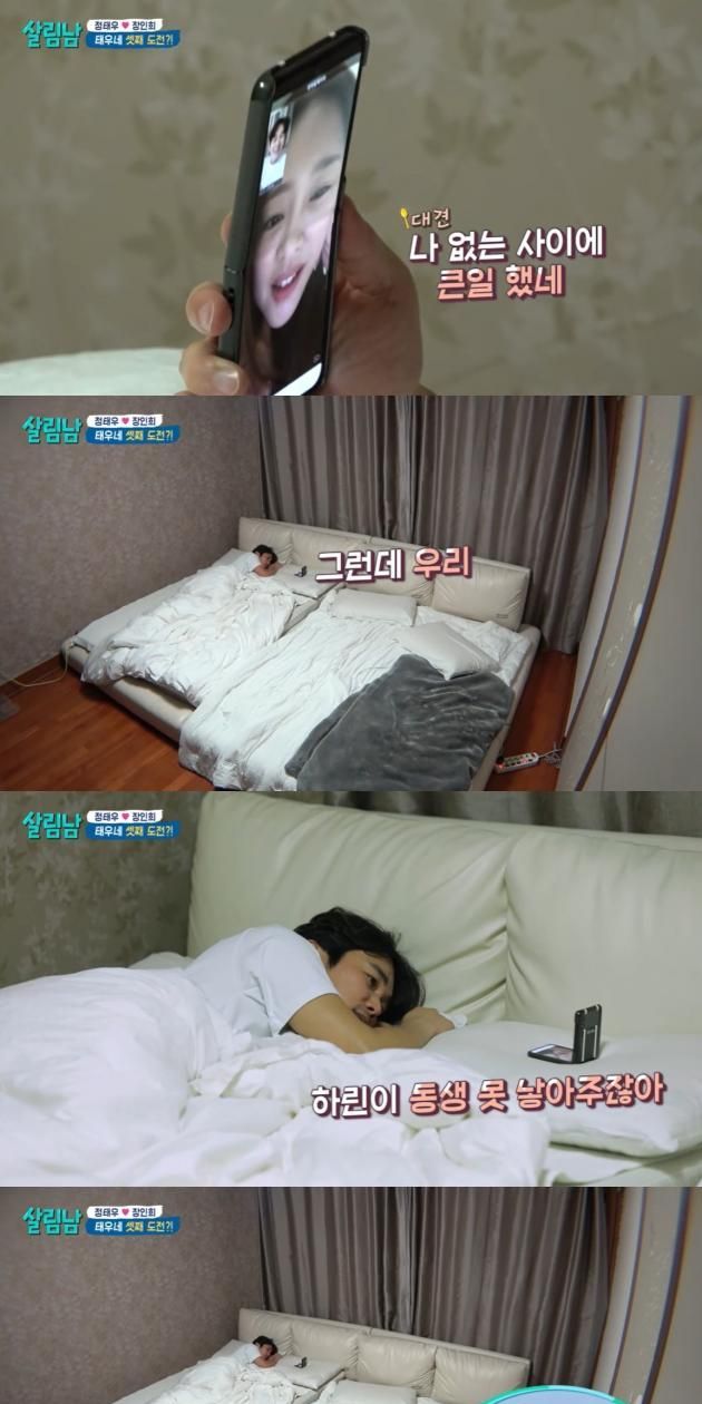 지난 18일 오후 9시20분 방송된 KBS 2TV '살림하는 남자들2'에는 아이들의 분리수면을 위해 노력하는 정태우의 모습이 담겼다.