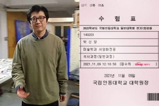그러다 최근 그의 근황에 국립 안동대학교 대학원 미술학과 서양화 전공 석사 과정에 진학하기 위한 모집에 응시했다는 사실이 인스타그램을 통해 뒤늦게 알려졌습니다. 박신양이 서양화 전공 대학원에 진학하며 수험표를 인스타그램에 공개했을 때 수능을 새로 보는 줄 알고 깜짝 놀랐습니다.