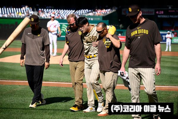 그대로 쓰러진 김하성은 좀처럼 일어나지 못한 채 고통을 호소했다. 결국 트레이너의 부축을 받아 그라운드를 빠져나왔다. 왼 발을 땅에 잘 딛지 못할 정도로 통증을 느낀 김하성의 타석은 대타 브랜든 딕슨이 이어받았다.