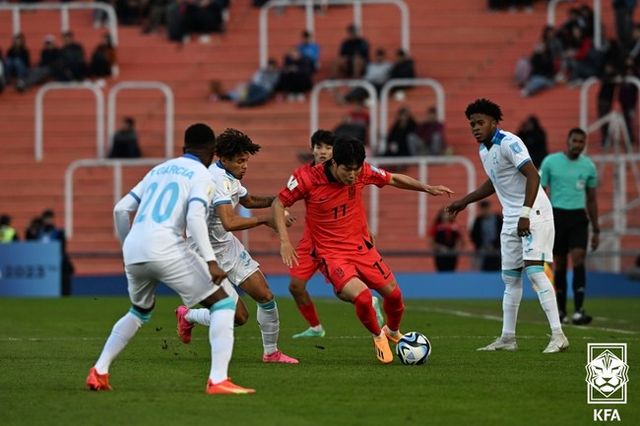 김은중 감독이 이끄는 대한민국 20세 이하(U-20) 축구 국가대표팀은 26일 오전 6시(한국시간) 아르헨티나 멘도사에 위치한 에스타디오 말비나스 아르헨티나스에서 열린 2023 국제축구연맹(FIFA) U-20 아르헨티나 월드컵 조별리그 F조 2차전에서 온두라스와 2-2로 비겼다. 이로써 한국은 1승 1무(승점 4)로 2위에 위치했다.