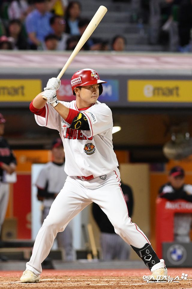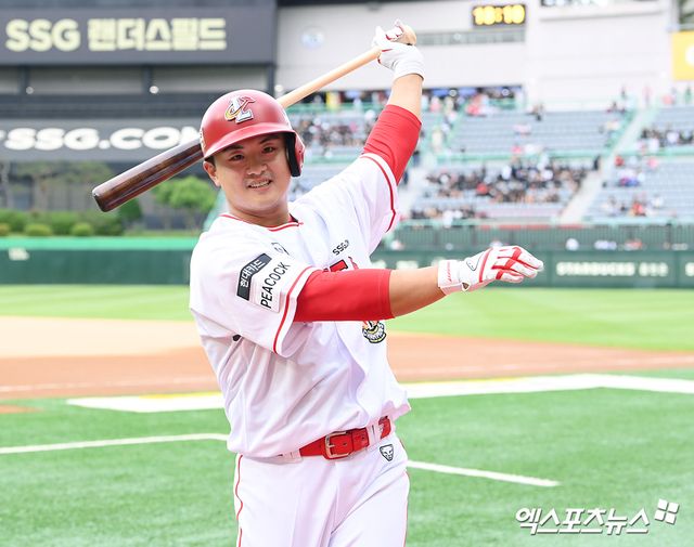 (엑스포츠뉴스 잠실, 유준상 기자) 트레이드로 이적한 지 하루 만에 전 소속팀을 마주했고, 안타와 타점까지 올렸다. 이제는 'SSG맨'이 된 강진성이 팀의 대승에 힘을 보탰다.
