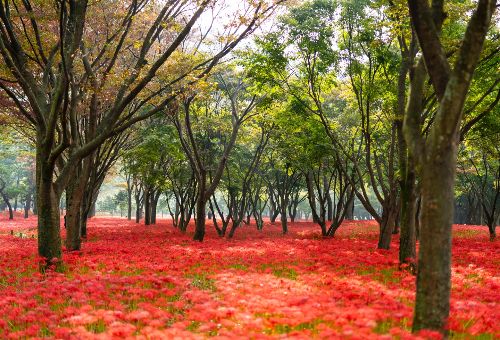 9월 중순이면 꽃길걷기 등 상사화축제가 열리고 붉은 빛깔로 채색된다. 불갑사로 향하는 길목에는 다양한 포토존이 마련돼 있다. 상사화 축제엔 반려견 동반도 가능하다고 한다. 지난해 9월16일부터 25일까지 열린 상사화 축제엔 약 50만명이 방문한 것으로 전해진다.