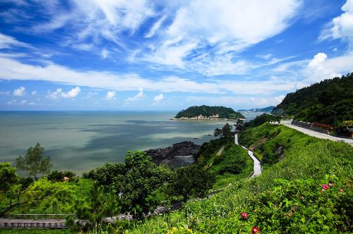 해안가 산 중턱에 마련된 노을전망대는 일몰 명소로 잘 알려져 있다.