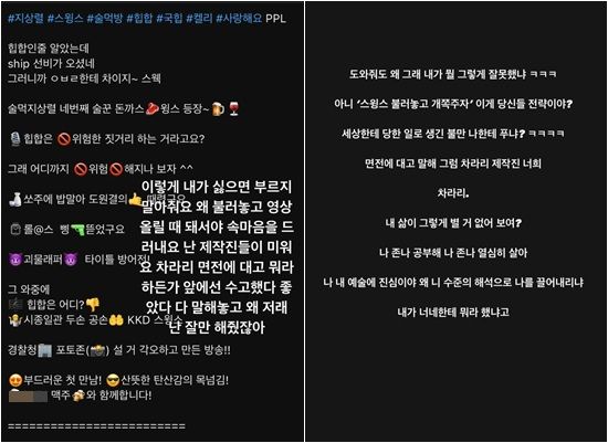 이어 "두번째 사과는 여전히 화가 나있더라. 저도 글을 쓰는 사람이다. 책도 두 권 내고, 가사를 쓰는 래퍼다. 사람들이 말할 때의 뉘앙스를 보는 눈치가 있지 않겠나. 내용을 보니까, 너무 더 화가 났다. 제작진 분들에게 하고픈 말이, 나이를 드시면서 사과하는 방법을 배워야 할 필요가 있는 것 같다"고 작심 비판했다.