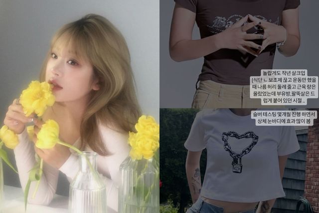 공개된 사진 속에는 최준희의 다이어트 전후 모습이 담겼다. 과거 자가면역질환 루프스병 때문에 체중이 많이 늘었던 최준희는 40kg을 감량해 이목을 끈 바 있다. 다이어트 후에도 곳곳에 군살이 있던 시절 몸매를 공개한 최준희는 꾸준한 관리로 현재의 슬렌더 몸매를 완성해 눈길을 끌었다.