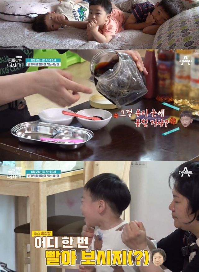 2일 방송하는 채널 A '요즘 육아 - 금쪽같은 내새끼'(이하 '금쪽같은') 측은 '어디 한번 빨아 보시지(?) 손가락 빠는 금쪽이들을 위해 엄마가 준비한 비장의 무기'라는 제목의 선공개 영상을 공개했다.