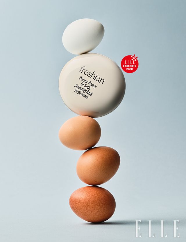 에그라이크 쿠션, 여러 번 덧발라도 얇게 레이어링돼 들뜸 없이 잡티를 자연스럽게 커버해준다. 12g, 3만5천원 Freshian.