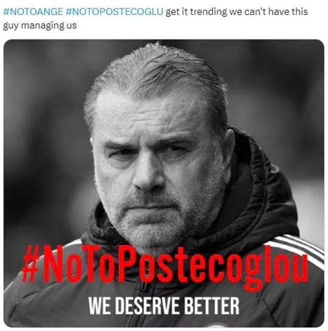 하지만 그가 셀틱에서 거둔 성과와 많은 팀에 받은 구애에도 불구하고 토트넘 팬들은 포스테코글루 선임에 대해 불만이 가득했다.