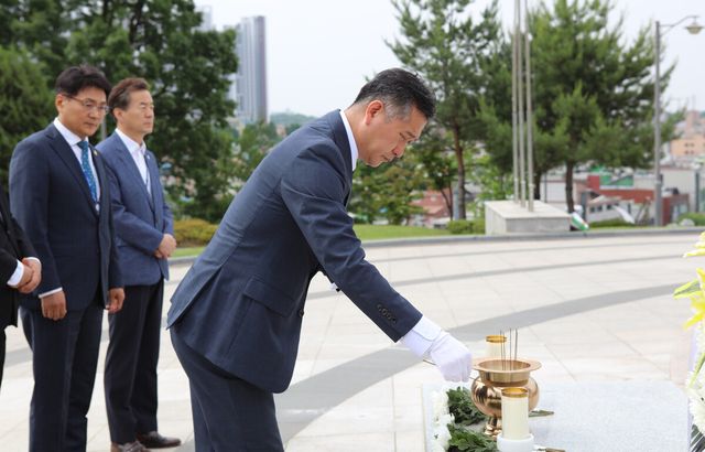 이날 오전 이민근 안산시장으로부터 임명장을 받은 허 사장은 원곡공원 현충탑에서 참배한 뒤 본사 대회의실에서 열린 취임식에서 취임선서를 통해 공식 일정을 시작했다.