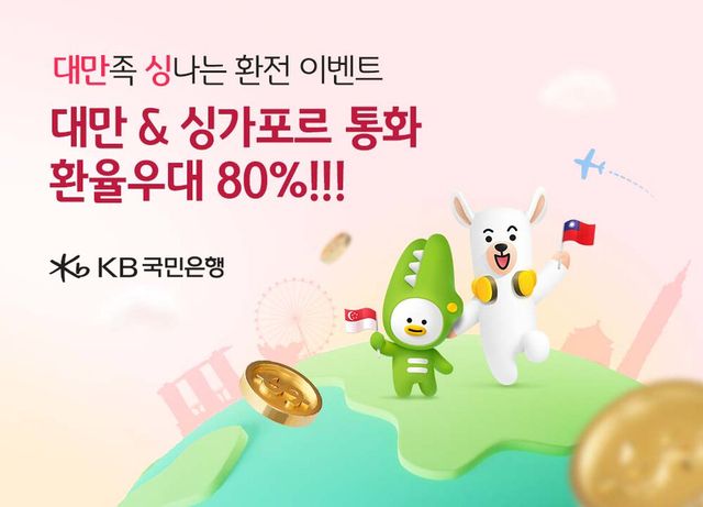 [M투데이 이상원 기자] KB국민은행은 비대면으로 대만 및 싱가포르 통화를 환전하는 고객에게 환율우대 80%를 제공하는 이벤트를 실시한다고 밝혔다.
