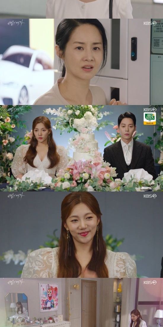1일 방송된 KBS 2TV 일일드라마 '비밀의 여자'에서는 주애라(이채영 분)와 남유진(한기웅)이 서경숙(김가연)을 막고 약혼식을 진행하는 장면이 전파를 탔다.