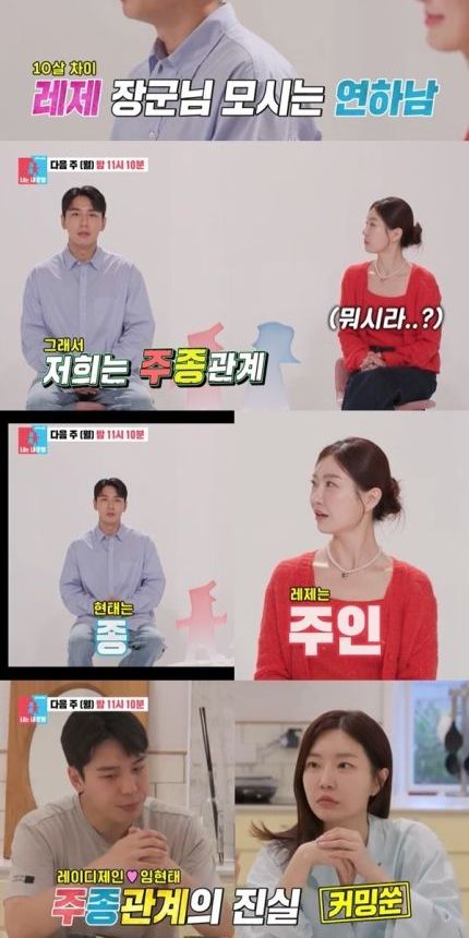 이어 임현태는 “그래서 주종관계”라며 레이디제인이 주인, 자신이 종이라 말해 레이디제인을 당황하게 만들었다. 임현태는 “이 정도는 해줄 수 있지 않을까 하는 부분이 있긴 있다. 당연히”라며 아내 레이디제인을 향한 불만을 말했다.