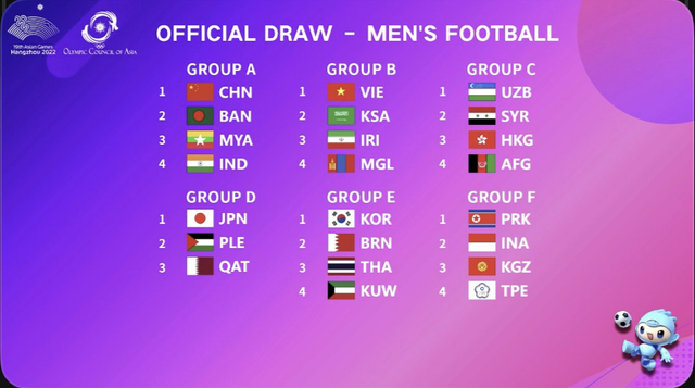 ◆ 2022 항저우 아시안게임 남자 축구 조추첨 결과