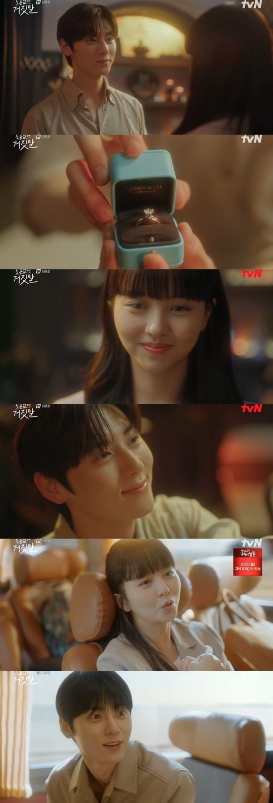 19일 방송된 tvN 월화드라마 '소용없어 거짓말' 16회(최종회)에서는 김도하(황민현 분)가 목솔희(김소현)에게 청혼한 모습이 그려졌다.