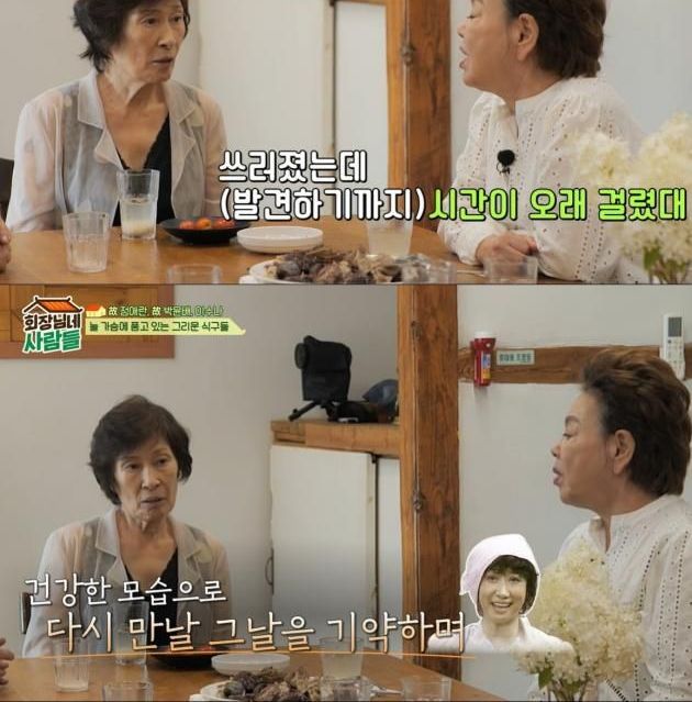 이에 김혜자는 "사람 일 모른다"라고 했고, 김수미는 "쓰러졌는데 (발견까지) 시간이 오래 걸렸다고 하더라"고 덧붙였다.