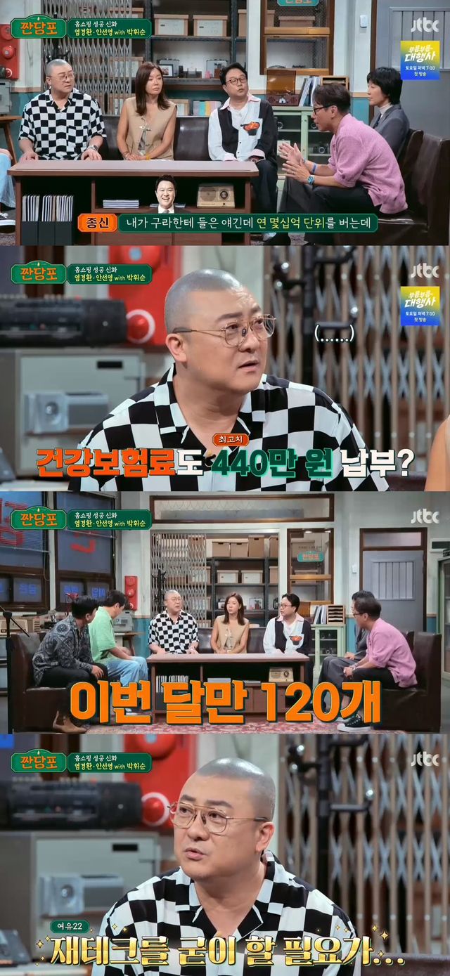 (엑스포츠뉴스 오승현 기자) '짠당포' 염경환이 홈쇼핑으로 일군 어마어마한 수입을 밝혔다.