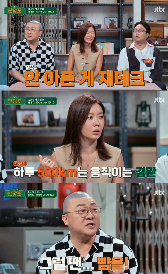 탁재훈은 "돈 쓸 시간이 없다는 게 센 척하는 거 아니냐"고 의문을 표했지만 안선영은 "홈쇼핑들이 다 외곽에 있다. 염경환을 보면 하루 500km를 이동하더라. 아까 '오빠 이러면 죽는다'고 했다"고 증언했다.