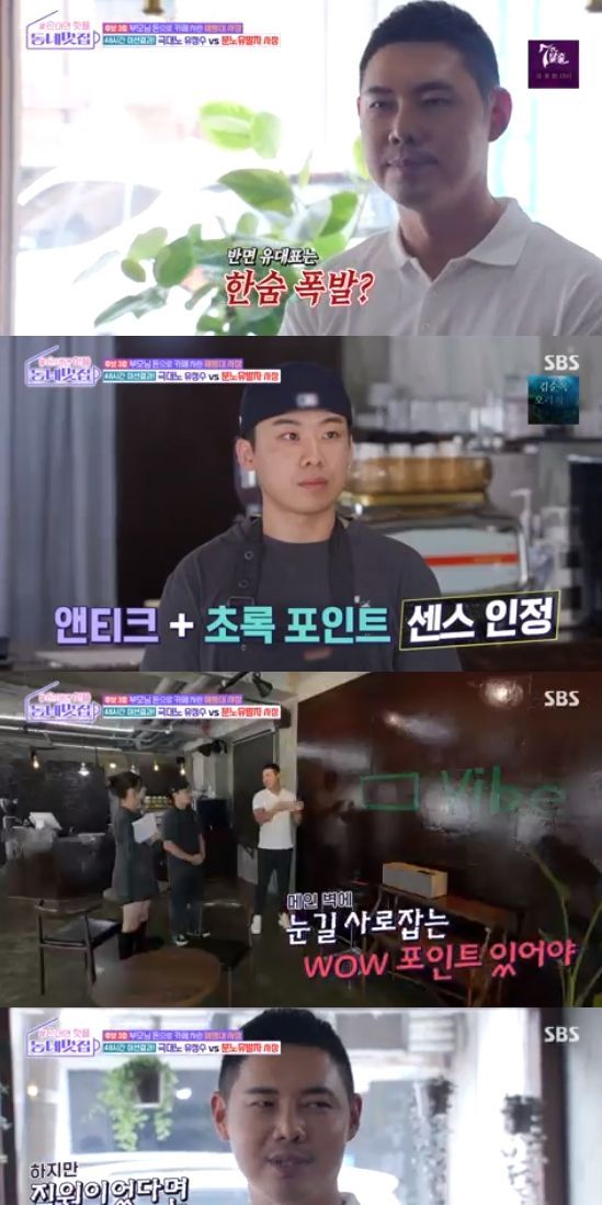 유정수는 "콘셉트가 캠핑, 스트릿, 플랜테리어, 앤티크 등 4가지가 섞여있었다. 그 중 앤티크를 선택했는데 그건 잘했다. 외관이 앤티크기 때문에 내부를 앤티크로 바꾼 건 가성비 면에서도 잘하신 것 같다. 그리고 포인트 컬러로 녹색을 사용한 것도 좋다. 녹색이 앤티크 소품들과 잘 어울린다. 사장님이 감각이 없는 분은 아니라는 생각이 든다"고 일단 칭찬했다.