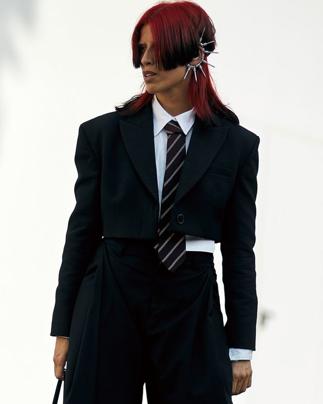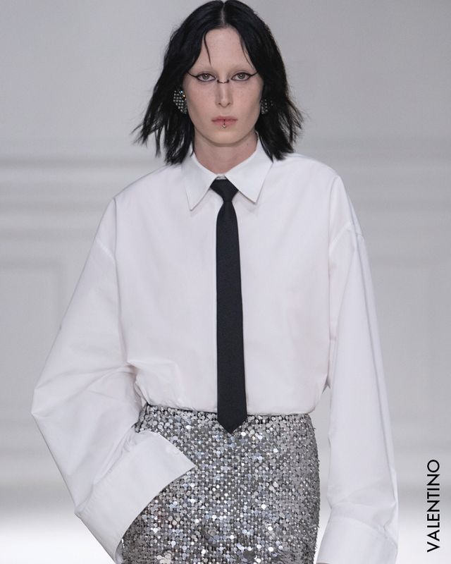 넥타이를 매는 법까지 기억에서 가물가물해질 무렵, 지난 파리 살로몬 로스차일드 호텔에서 열린 발렌티노의 2023 F/W 쇼는 기억 속 아이템을 다시 찾게 만들었다. 크리에이티브 디렉터 피에르파올로 피치올리가 ‘블랙 타이’를 주제로 처음부터 끝까지 넥타이 룩을 선보였기 때문이다. 셔츠 깃 아래로 홀터넥처럼 타이의 매듭을 이은 미니드레스에 록 스터드 백, 컴뱃 부츠를 매치해 강렬한 펑크 룩으로 시작한 쇼는 성별을 가리지 않고 넥타이를 더한 수트에 마이크로 쇼츠와 스커트를 매치한 룩으로 이어졌고, 깃털과 비즈 장식에 타이를 더한 나이트웨어로 피날레를 장식했다. 다양한 소재의 셔츠에 넥타이를 빈틈없이 조여 맨 룩이었지만, 런웨이 위에 펼쳐진 룩들은 넥타이의 무게감을 홀가분하게 벗어 던진 모습이었다.