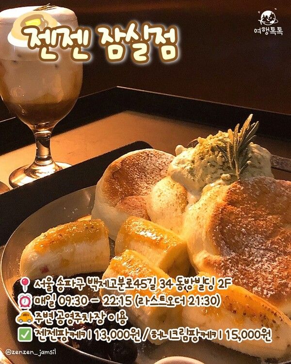 ✔️ 대표메뉴: 젠젠 팡케키 13,000원 / 허니크림 팡케키 15,000원