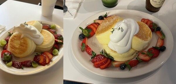 일반 팬케이크와 달리 머랭을 넣어 반죽해 두툼하게 구운 수플레 팬케이크는 마치 구름을 입에 넣은 듯 한 폭신폭신하고 매우 부드러운 식감이 일품인 디저트입니다. 수플레를 하는 집은 많지만 식감을 잘 살려 제대로 하는 곳은 찾기 어러운데요.