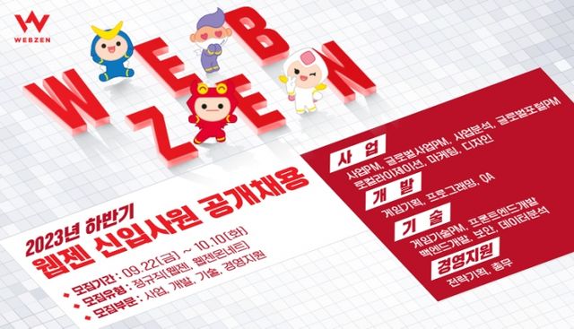 웹젠이 2023년 하반기 신입사원 공개 채용을 진행한다. 사진=웹젠 제공