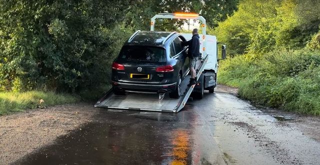 폭스바겐 투아렉 운전자는 운이 좋지 않았다. 그는 물속에서 급하게 가속했고, 결국 시동이 꺼졌다. 정확한 원인은 알 수 없지만, 투아렉은 여울을 거의 건넌 지점에서 멈춰 다시는 시동을 걸 수 없었다. 차량은 배기 시스템에서 물을 뿜어내기 시작했고, 견인차를 불러 물 밖으로 끌어냈다.
