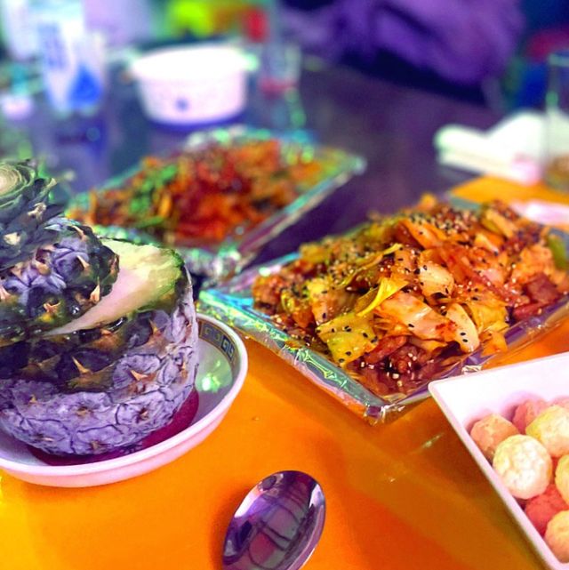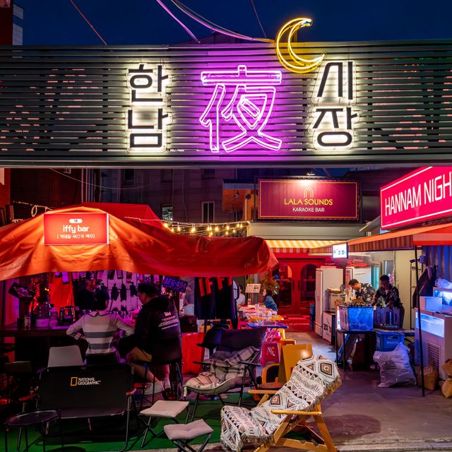 한남야시장 마무리 필수 코스 라라사운즈. 부산식 가라오케 컨셉의 술집으로 목, 금, 토에는 공연도 함께 즐길 수 있는 것이 특징. 주류는 양주부터 위스키 등 다양하고 프라이빗한 자리까지 갖춰져 이색 데이트 코스로 제격이다. 든든하게 배를 채우고 소화시킬 겸 가볼 만한 포차로 강력 추천한다. 또한 흥을 사랑한다면 이곳에서 신나는 음악과 특색 있는 술로 분위기를 느껴보는 건 어떨까.