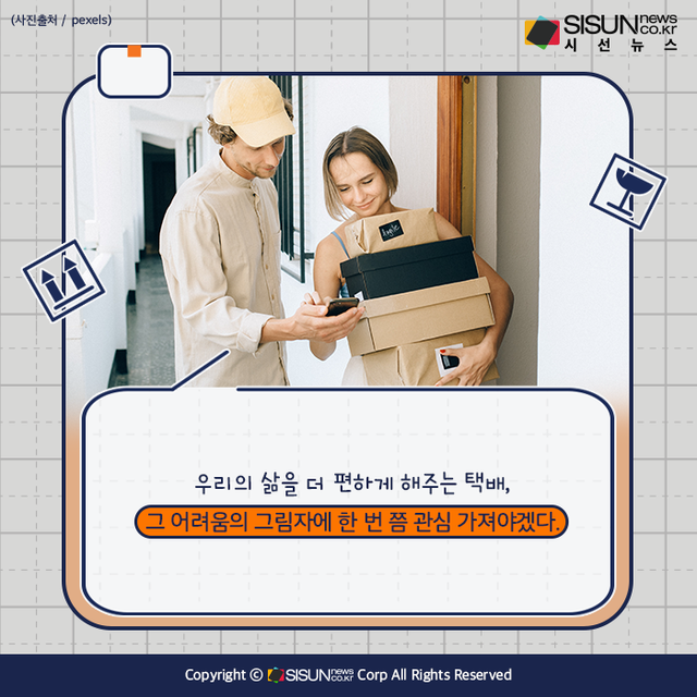 온라인 소비 급증으로 택배 건수 역시 증가했다. 그러면서 택배 기사들의 노동 강도는 더 극한으로 치닫고 있다. 택배 산업은 사상 초유의 특수를 누리고 있지만 그 이면에는 역시나 혹독한 노동에 시달리는 택배기사들이 있는 것. 우리의 삶을 더 편하게 해주는 택배, 그 어려움의 그림자에 한 번 쯤 관심 가져야겠다.