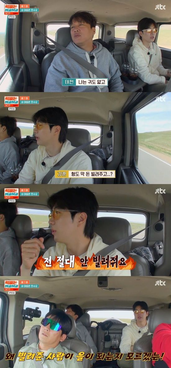 이에 차태현은 "나는 귀도 얇고 옆에서 마누라 아니었으면 정말 돈 많이 나갔을 거다. 큰일났을 거다. 돈도 잘 빌려줬다"고 했고, 강훈은 "나는 돈 절대 안 빌려준다. 왜 돈을 빌려준 사람이 을이 되는지 모르겠다"고 했다.