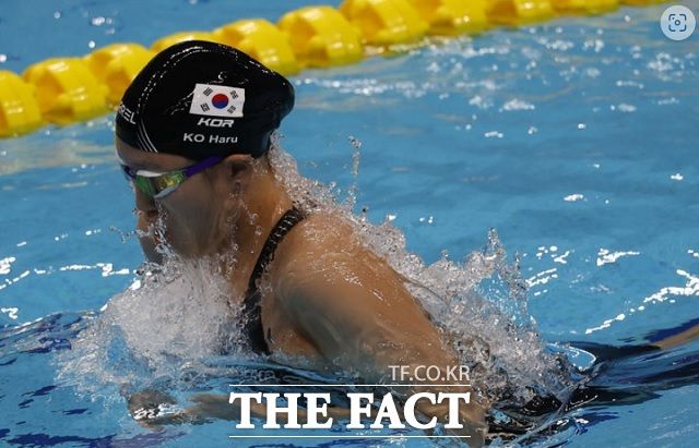 고하루가 29일 중국 항저우 올림픽 스포츠센터 수영장에서 열린 여자 혼계영 400m 결선 경기에서 역영하고 있다. /뉴시