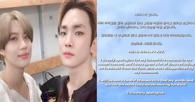 멤버 키(key)는 29일 자신의 SNS를 통해서 사과문을 올리며 "저의 부적절한 말과 행동으로 인해 불편한 마음과 상처를 받으신 분들이 계실거라 생각하니 그저 죄송한 마음 뿐이다. 앞으로는 제 언행으로 인해 불편하시지 않도록 더욱 주의하겠다"고 말했다.
