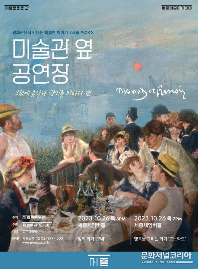 오후 3시 프로그램에선 빛의 화가 클로드 모네를 다루고, 오후 7시엔 오귀스트 르누아르 작품의 해설을 향기와 음악과 함께 관람할 수 있다.