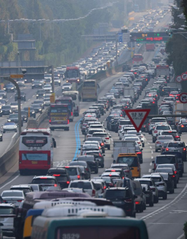 이날 한국도로공사에 따르면 오전 10시 기준 지방 주요 도시 요금소에서 서울 요금소까지 걸리는 시간은 부산 5시간17분, 울산 4시간57분, 강릉 2시간40분, 양양 1시간55분, 대전 1시간30분, 광주 3시간20분, 목포 3시간46분, 대구 4시간17분 등이다.