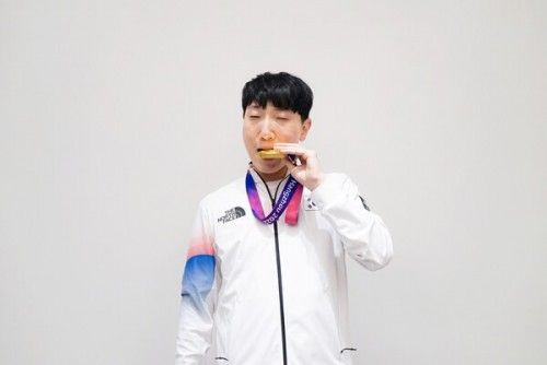 | FC온라인 메달 세레머니를 하고 있는 곽준혁 선수. /아시아e스포츠연맹 |