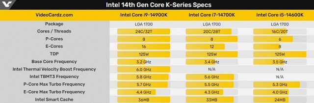 정리하자면 이번 인텔 14세대 CPU는 13세대와 같은 아키텍처를 같은 미세공정에서 제작해. 모델에 따라 늘어난 코어와 클럭으로 인한 약간의 성능 향상을 기대할 수 있어. 문제는 전력소비야. 최대 300W에 달하는 훨씬 더 많은 전력을 소비할 거 같아. 그래서 메인보드 전원부 설계가 관건이 될것 같아.