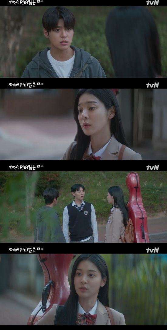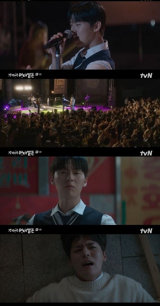 3일 방송된 tvN 월화드라마 '반짝이는 워터멜론' 4회에서는 하은결(려운 분)이 하이찬(최현욱)과 무대에 선 모습이 그려졌다.