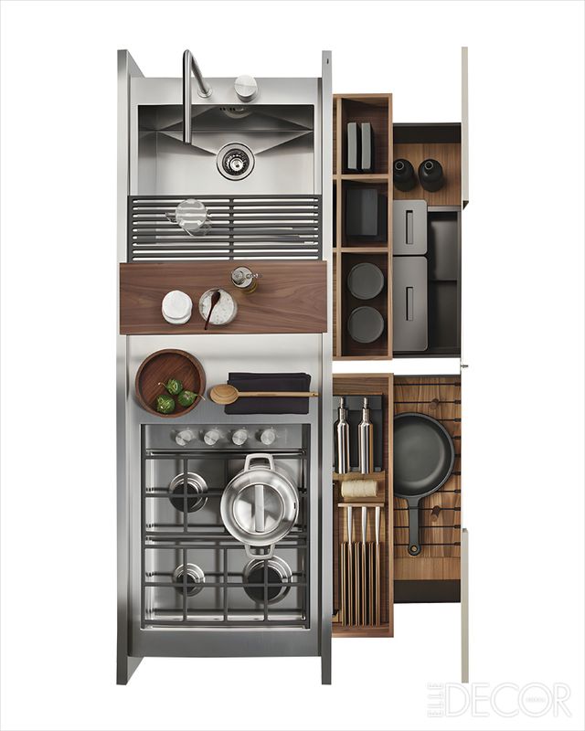 작지만 알차다. 약 150cm 주방에 필요한 모든 구성 요소가 정교하게 배치돼 있다. 이탈리아 디자이너 안드레아 페데리치(Andrea Federici)가 디자인한 ‘스몰 리빙 키친(Small Living Kitchen)’은 식기와 냄비, 프라이팬까지 보관할 수 있는 알찬 수납공간을 자랑한다. 부드럽게 닫히는 완충 장치를 가진 월넛 소재의 서랍과 자동차 부품에 많이 쓰이는 AISI 304 스테인리스스틸 소재를 활용해 견고한 만듦새로 완성했다.